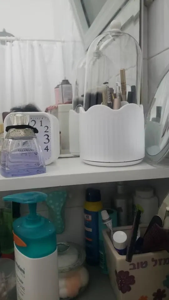 This rotating organizer is fantastic! I can easily find and access all my makeup. The design is super stylish and fits perfectly on my vanity. Love it!